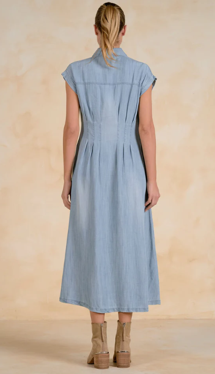Effortlessly refined, the Donna dress delivers timeless sophistication with modern ease. Designed with cap sleeves and a full button front, this midi dress is made to flatter every figure, with seaming that contours the waist. Style it with statement heels or boots and take it from day to night.